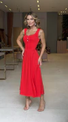 Vestido Malha Canelada Drapeado Virgínia Laranja