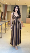 Vestido Tricot Natallye Marrom Listrado