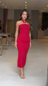 Vestido Viscose Mídi Esmeralda Vermelho - loja online