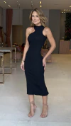 Vestido Canelado Cavado Nadya Preto - comprar online Vestido Canelado Cavado Nadya Preto - comprar online