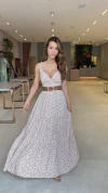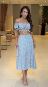 Conjunto Floral Cropped & Saia Mídi Azul Lara