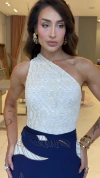 Vestido & Macaquinho Tule Floral Branco Sanny